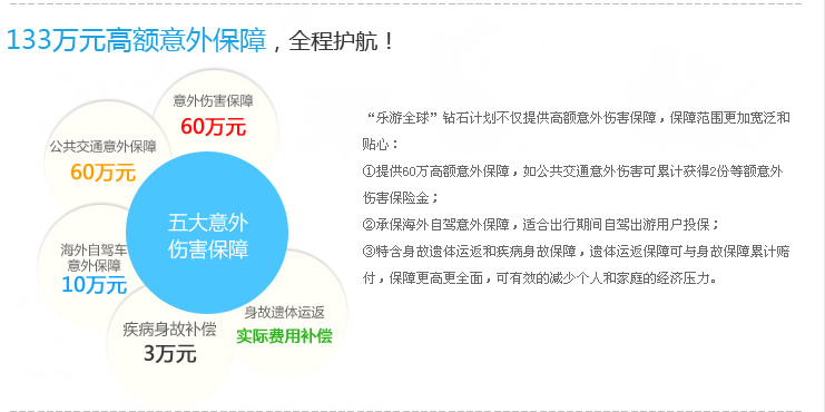 旅行医疗保险300000旅行医疗保险(包含门诊及住院,提供境外医疗直付服务,其中境内疾病医疗费用以2,000元为限)Medical reimbursement (Including outpatient and inpatient,provide medical direct payment services,domestic medical reimbursement limit is RMB2,000)